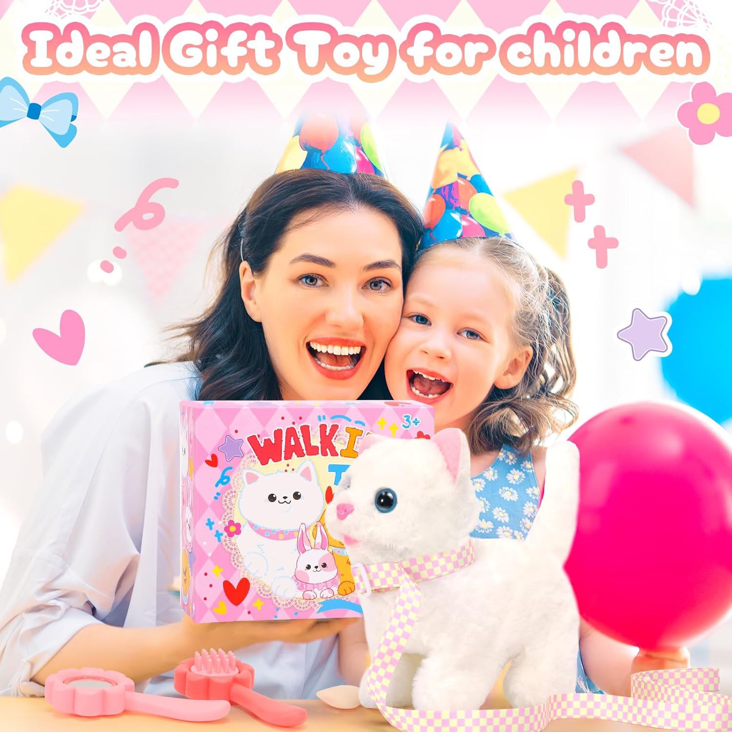My Little Purr-Pal is an interactive plush toy cat designed to captivate young children with lifelike movements and sounds. This walking companion features authentic meowing, tail-wagging action, and comes equipped with a convenient leash for guided play. The soft, cuddly design makes it perfect for toddlers and kids who love interactive pets. Ideal as a birthday gift, this electronic toy encourages imaginative play while providing tactile comfort. Watch your child's face light up as their new furry friend comes to life with every step and playful gesture.